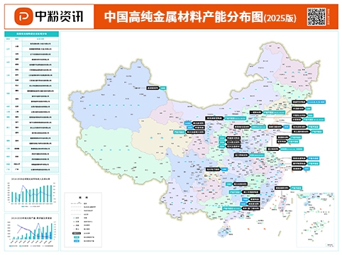 高纯金属材料是衡量国家工业水平的 “黄金标尺”,其重要性已超越单纯的材料范畴,成为科技突破、经济转型和国家安全的交汇点。近年来,随着科技的飞速发展,高纯金属材料在电子、新能源、航空航天等领域的应用日益广泛,市场需求也在持续增长。中国高纯金属材料产能分布图(2025版)列举了国内高纯材料主要生产企业及产能分布情况,为企业了解产业规模,把握行业机会提供准确详实的市场信息。